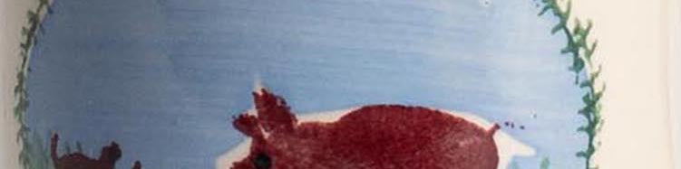 Handcrafted, small ceramic mugs featuring a classic and versatile design, with a charming hand-sponged pig print, beset against a blue and green landscape. Founded in 1976 by Nicholas Mosse and his wife Susan, Nicholas Mosse is known for producing handmade, functional pottery in the style of Irish Spongeware, characterized by simple shapes and patterns inspired by Irish landscapes and nature.