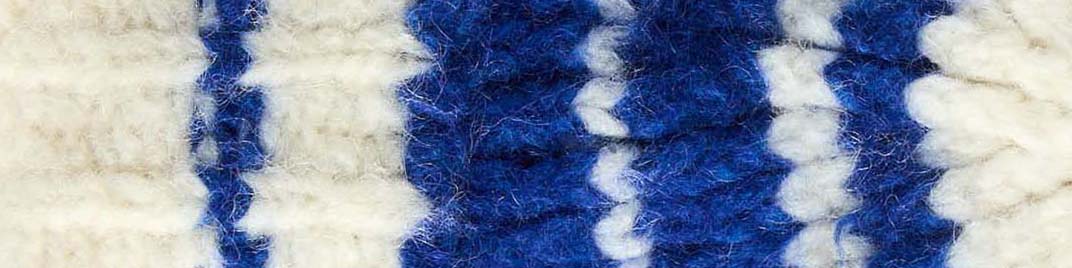 Striped beanie hat in black striped alpaca wool. Features a fold back, finished with an external leather logo patch.