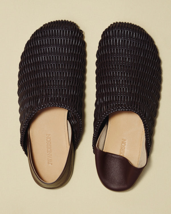JW Anderson's luxury shoes for women rework classic shoe styles through a lens of form and play. Loafer shoes, in seasonal variations: slides, moccasins, Chelsea boots; Paw heels, babouche shoes, chain heels, ruffle boot and ballerina. Each silhouette is reconsidered with intent. Crafted in materials such as smooth nappa leather, silk Damask, suede, and neutral colours such as black and tan to vibrant seasonal colour combinations.