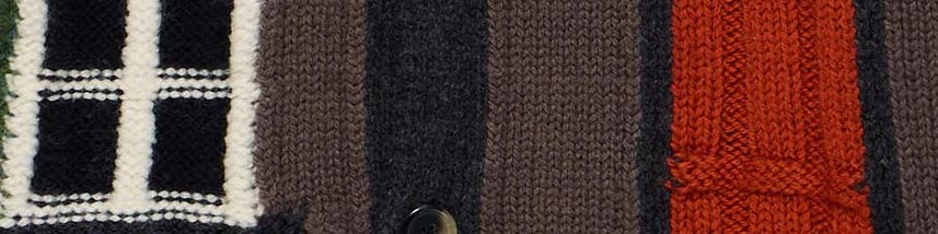 Women's knitted cardigan in chestnut brown intarsia jacquard knit. An archive design, selected from the runway Resort 2025 show, reimagined. Features hand-embroidered details, finished with horn buttons.